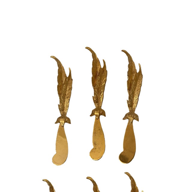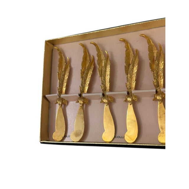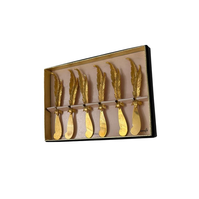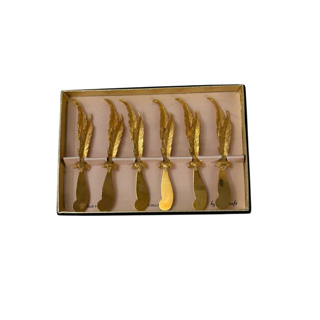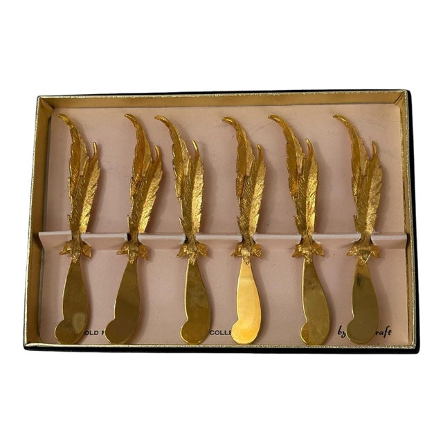 Mid 20th Century Set of 6 24k Gold Plated Feather Cheese Knives – Janis Collection by Jancraft
