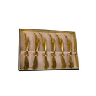 This glamorous set of six vintage cheese knives from the Janis Collection by Jancraft brings a sculptural elegance to any entertaining occasion. Each knife is finished in luminous 24k gold plating and features a raised feather relief handle, adding texture and charm to cocktail hours, charcuterie spreads, and holiday tables alike.