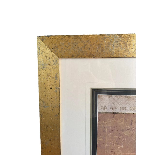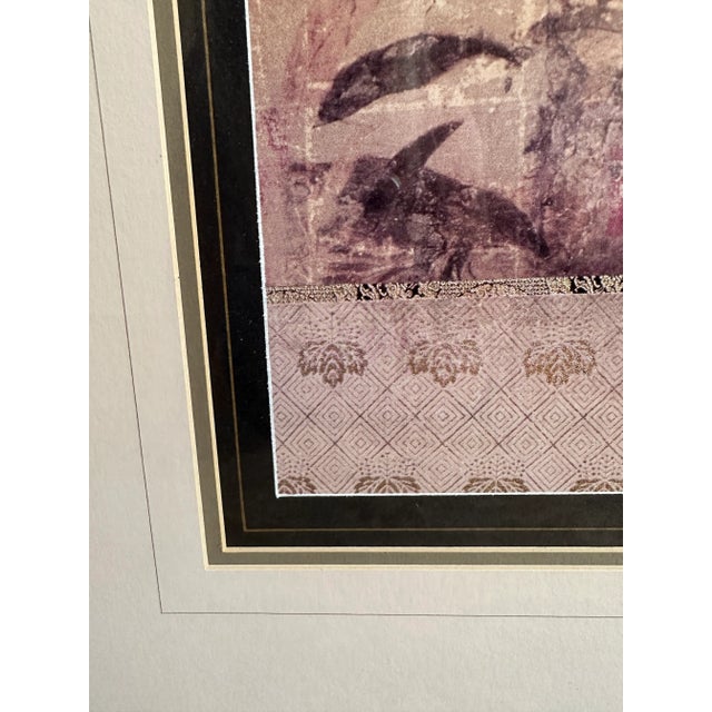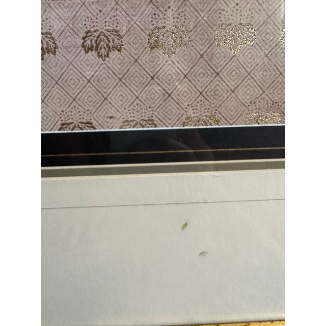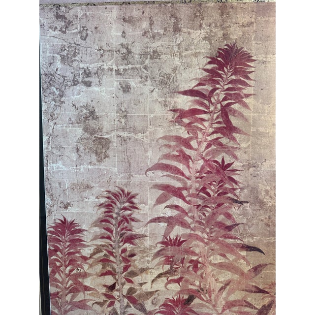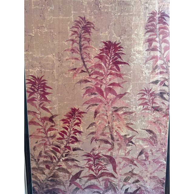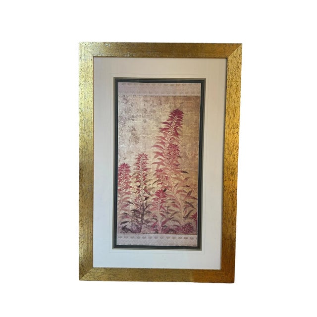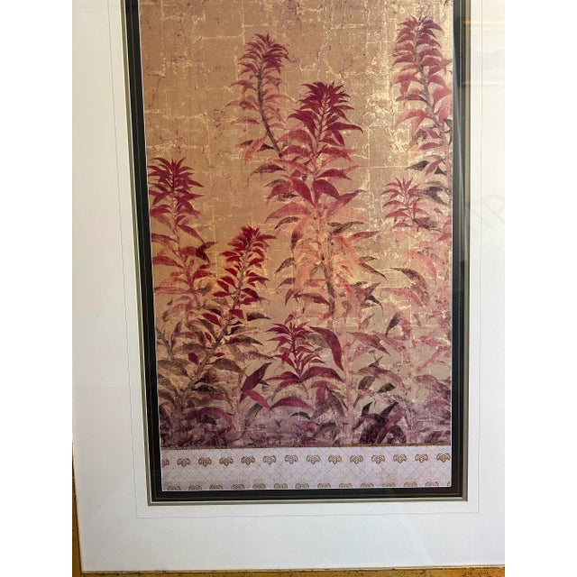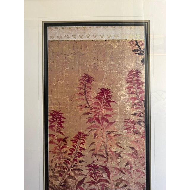 The pair features lovely Asian inspired botanical scenes of ferns in rose and eggplant hues. Gold leaf motifs border the top and bottom of each scene.