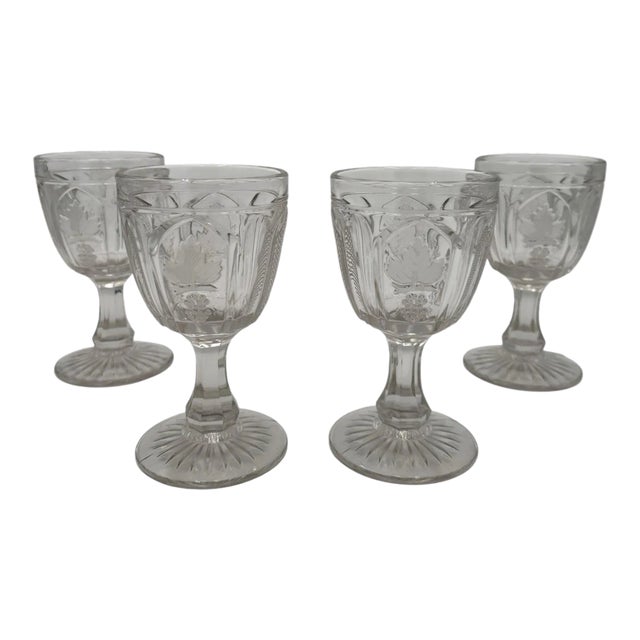 Set of 4 Late 20th Century Boston Sandwich Magnet and Grape Wine Goblets, Reproduction From the Metropolitan Museum of Art
