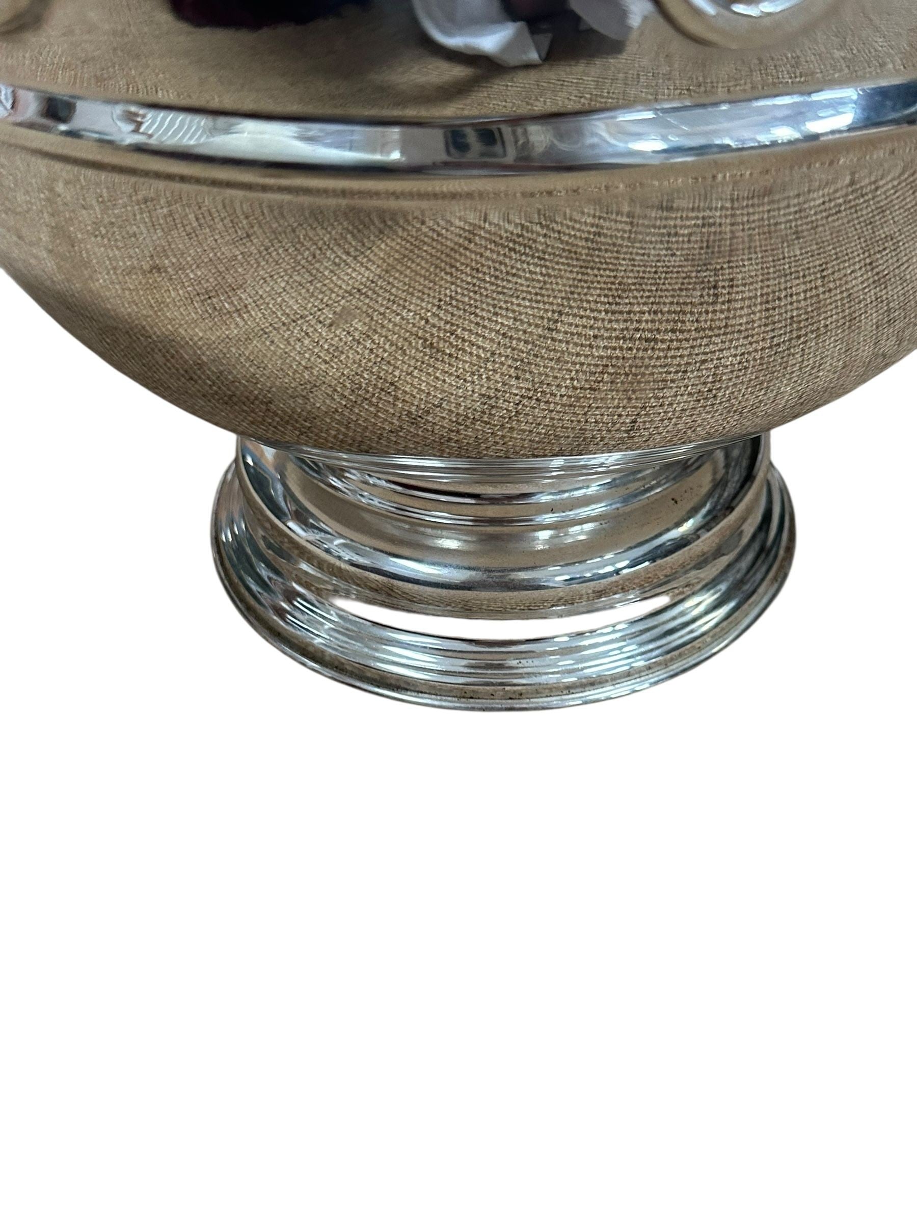 The contrast between the clear glass insert and the polished silverplate creates an elegant, timeless look well suited to English Traditional, Continental, and classic barware interiors. Both functional and decorative, this Monteith makes an exceptional statement for a bar, dining table, or entertaining vignette.