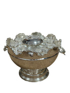 Vintage Silverplate and Glass Caviar and Vodka Montheith Bowl Server with Sturgeon Relief Handles and Lid