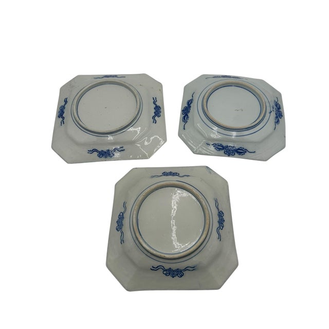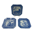 Late Meiji Period Blue & White Cut-Cornered Serving Platters — Set of Three