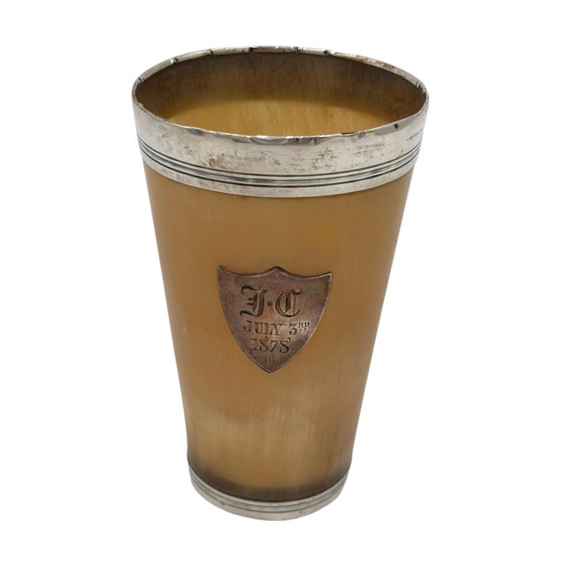 A refined example of Victorian-era craftsmanship, this late 19th century horn cup is both utilitarian and commemorative.