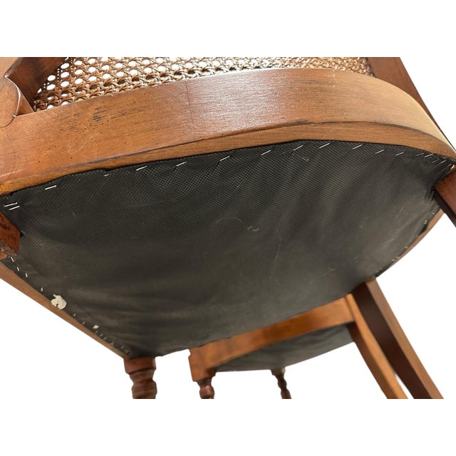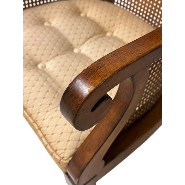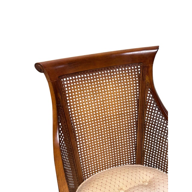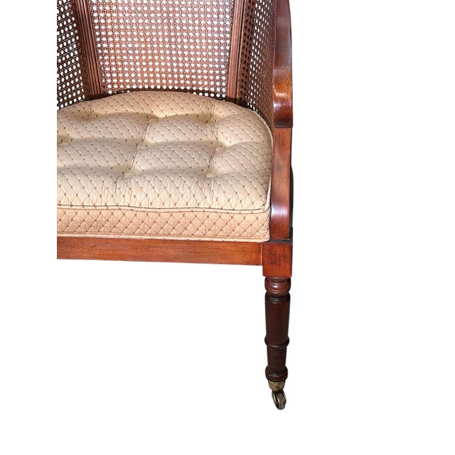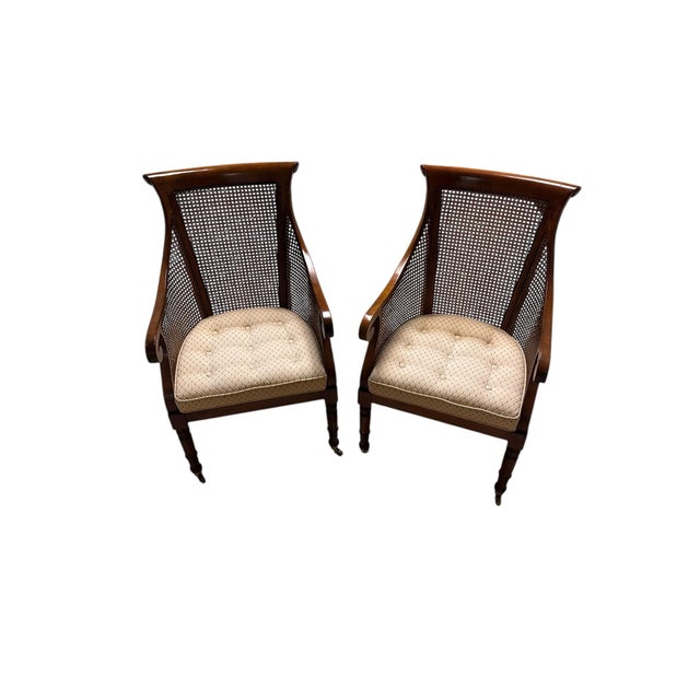 Pair of Early Mid-Century Regency Caned Library Chairs With Quilted Tufted Upholstery