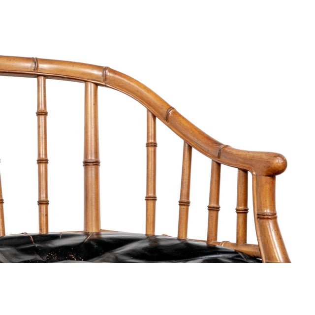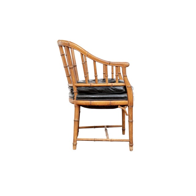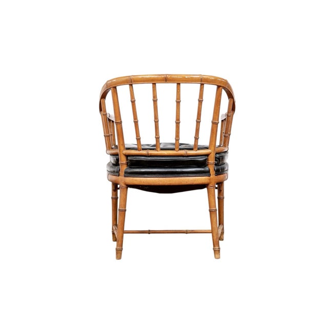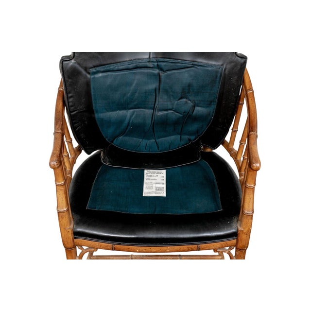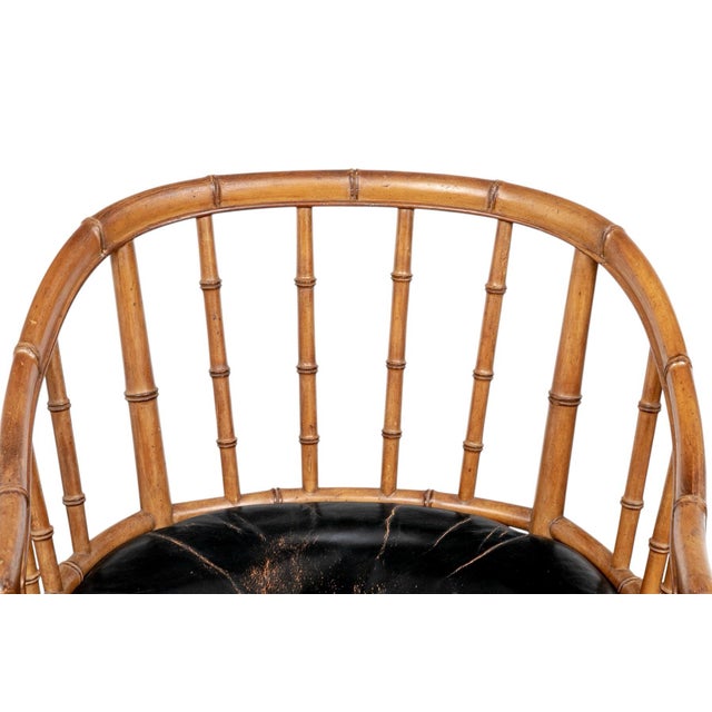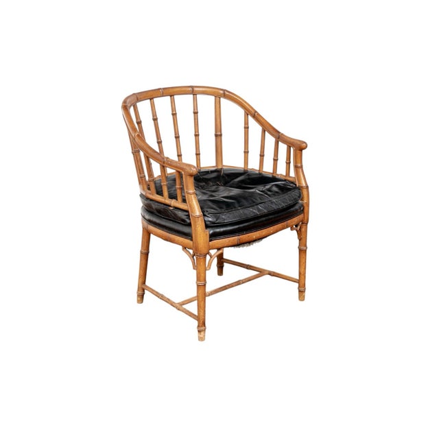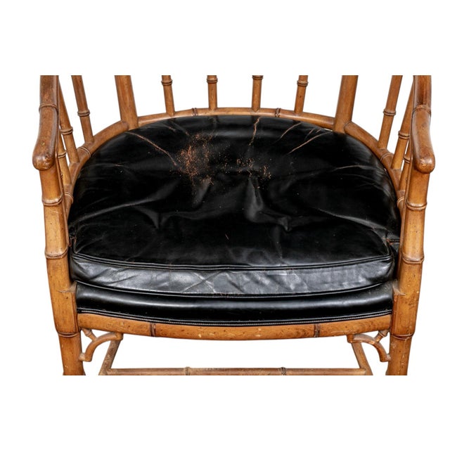 1930s Joseph Giannnola Faux Bamboo Regency Style Chair With Black Leather Cushion