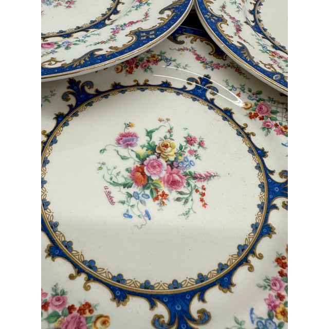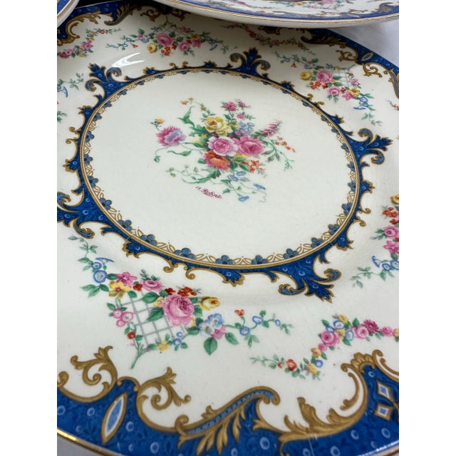 Delicate set of 10.75" dinner plates by Myott Staffordshire in the Sevres Blue pattern, a pattern now discontinued.