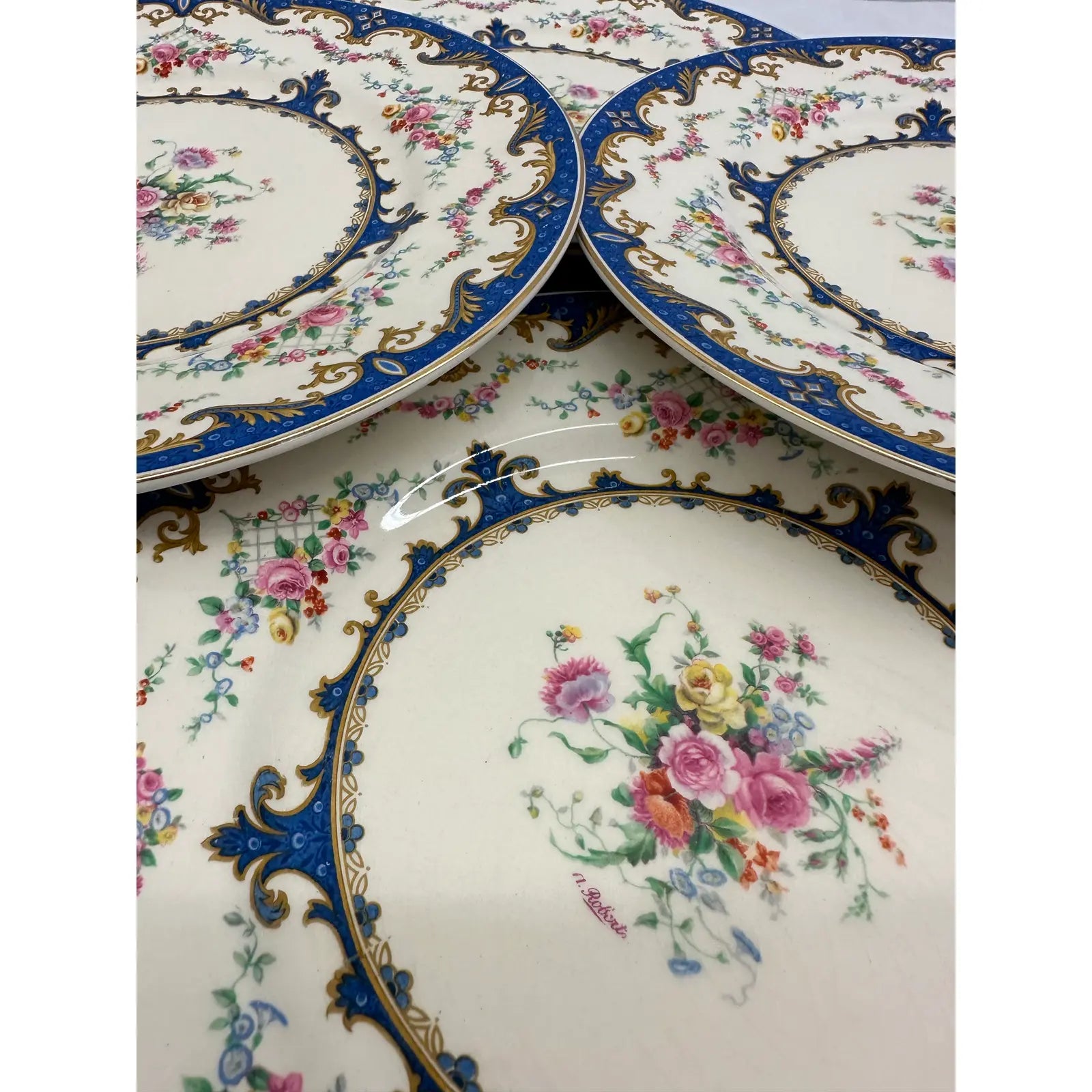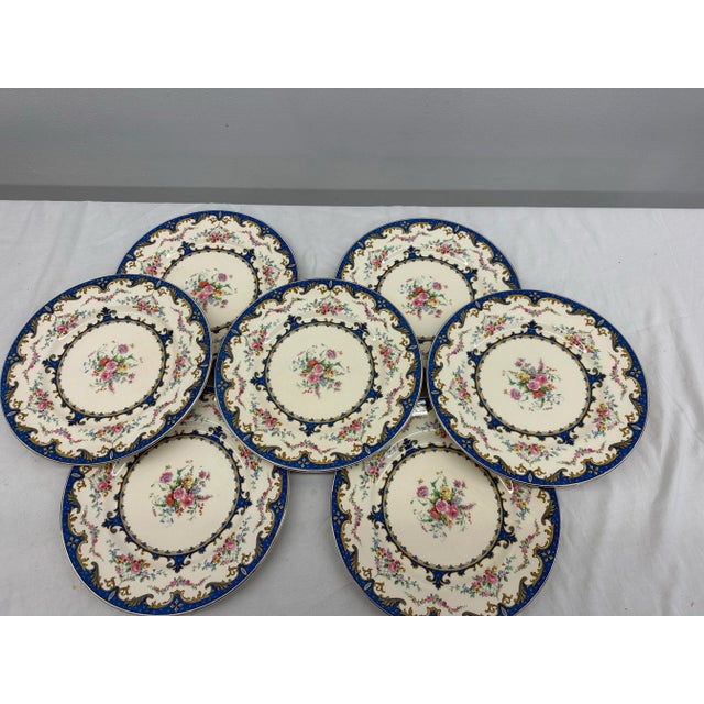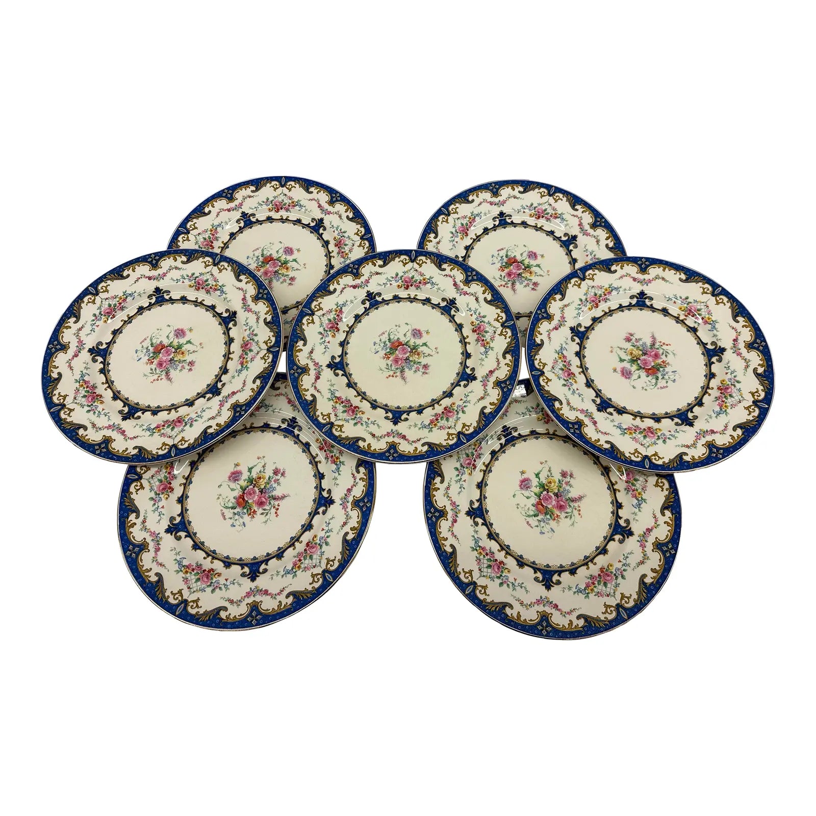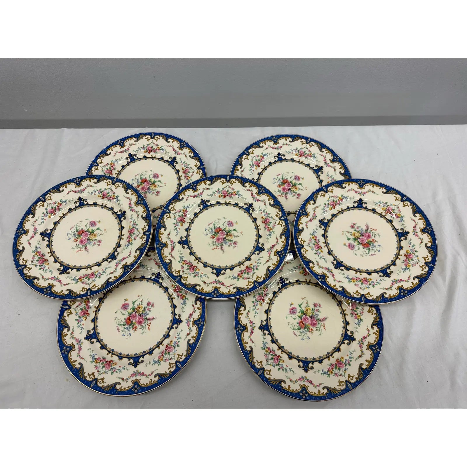 1940s Sevres Blue Plates by Myott Staffordshire - Set of 7