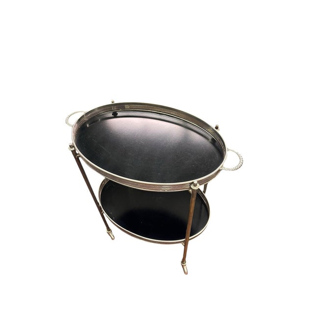 Its refined design complements a variety of interiors, from mid-century modern to contemporary, and its compact size makes it a versatile choice for small spaces. Whether used as a serving station, a display for curated barware, or an accent piece, this bar cart brings a touch of French sophistication and vintage charm to any setting.