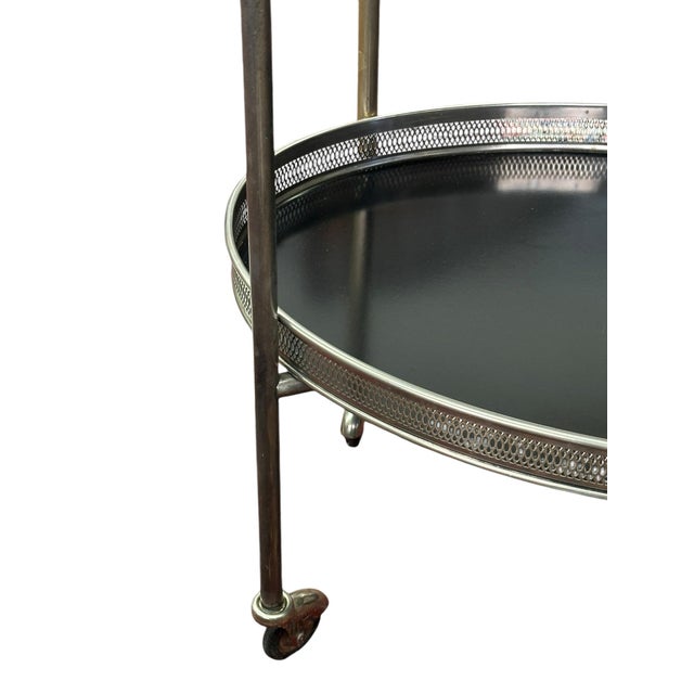 1950s French Nickel-Plated Bar Cart With Black Formica Trays