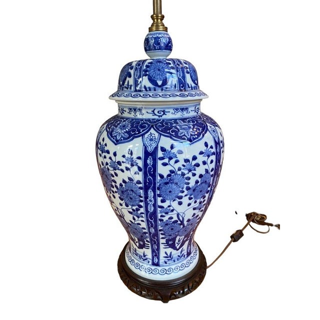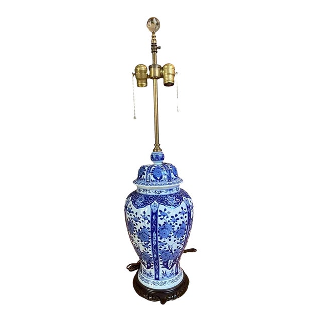This incredible Warren Kessler lamp is a rare find and brings blue and white to a whole new level. The combination of blue, white and brass is both on trend and a timeless classic.