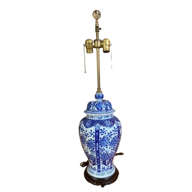 1950s Warren Kessler Chinoiserie Blue and White Table Lamp