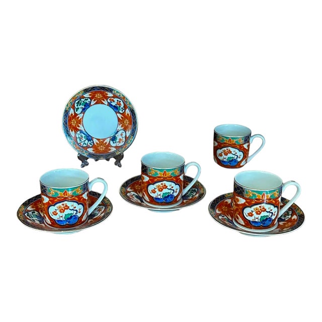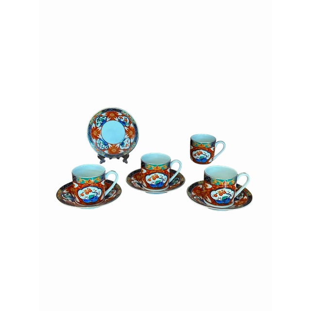 Delicate set of hand-painted Dai Ichi Toki Imari espresso cups and saucers.