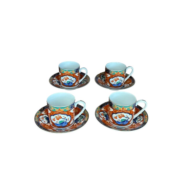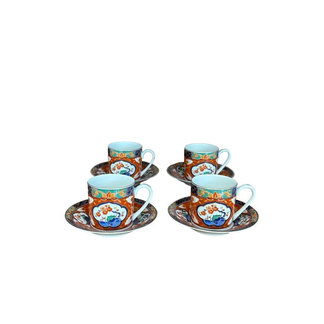 1970s Hand-Painted Dai Ichi Toki Imari Espresso Cups and Saucers - 8 Pieces