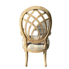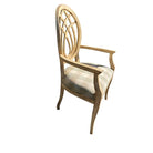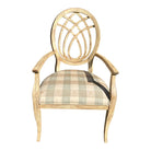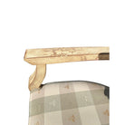 Traditional chair features elegant curves, upholstered seat in tan and check pattern with bee details. Condition consistent with age and use. Some touch up needed or use as is for a cozy cottage look.