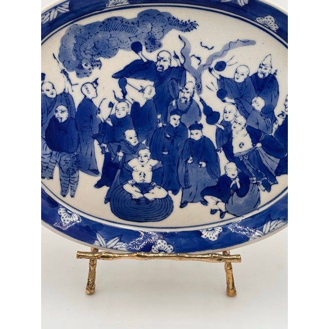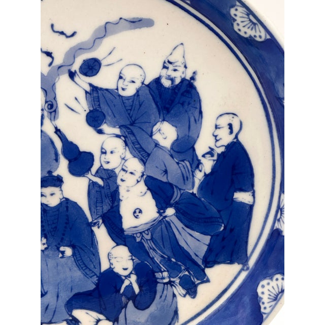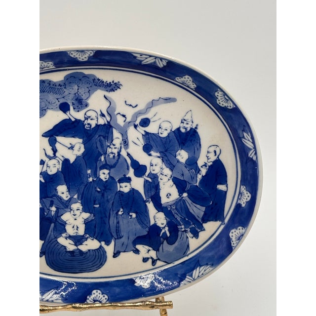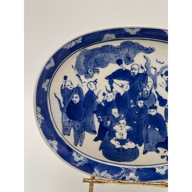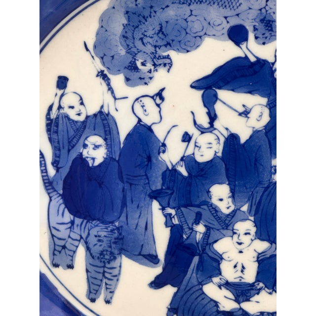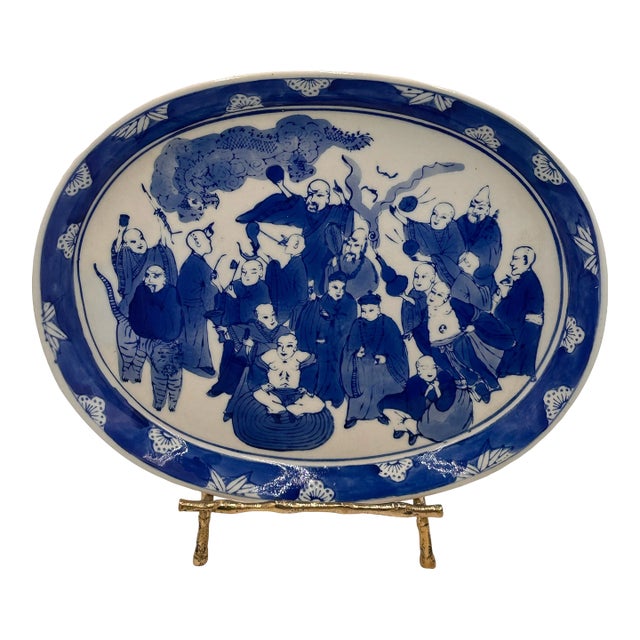This is a remarkable example of 19th century Chinese export porcelain. The platter features traditional motifs of wisemen, a dragon and a tiger.