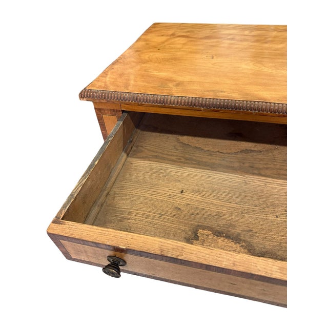 Wear appropriate with age and use. A very small chip in marquetry that does not take away from beauty or function. We want our customers to have complete satisfaction with their purchases. We endeavor to note any wear and tear to our pieces, but we encourage you to carefully and thoroughly review all photos. We consider product photos a part of our condition report and kindly request that you to inspect them carefully before your purchase.