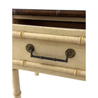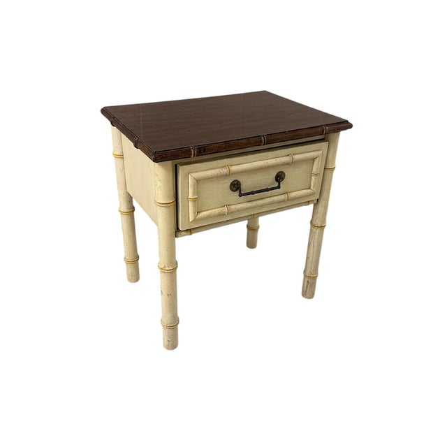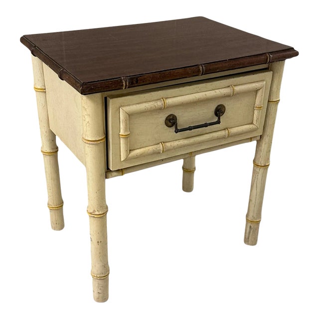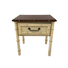 This charming night stand has a beautiful faux bamboo frame and dark wood top.
