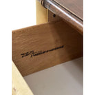 The ivory finish enhances its versatility, allowing it to blend seamlessly into various décor styles, from coastal and Palm Beach Regency to transitional interiors. The nightstand includes a single drawer with a metal pull.