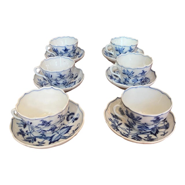 Antique Blue Onion Meissen Teichert Set of Teacups for 6 - 12 Pieces