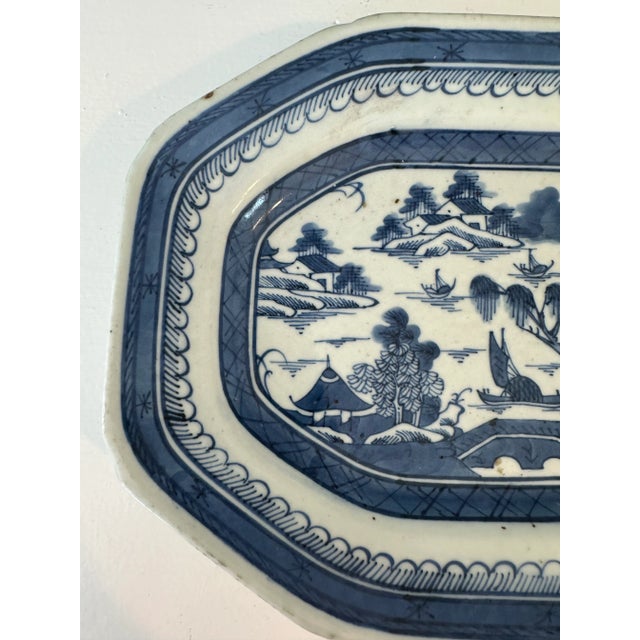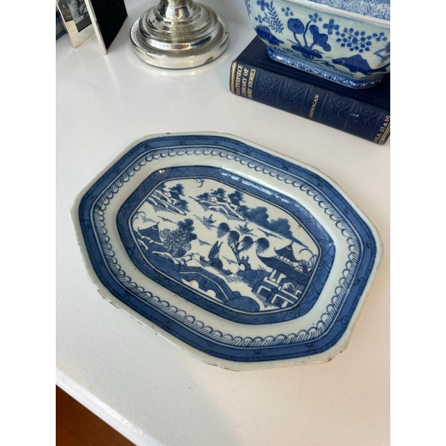 Antique Chinese Blue and White Octagonal Porcelain Platter