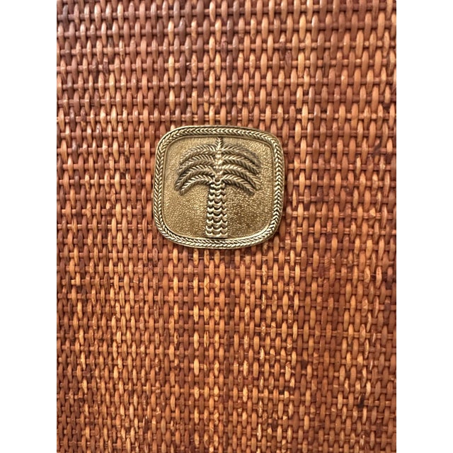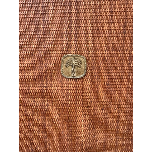 Brass Bauer International emblem centered on the rattan panel.