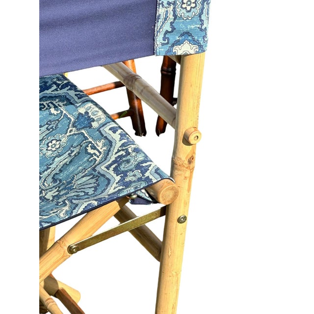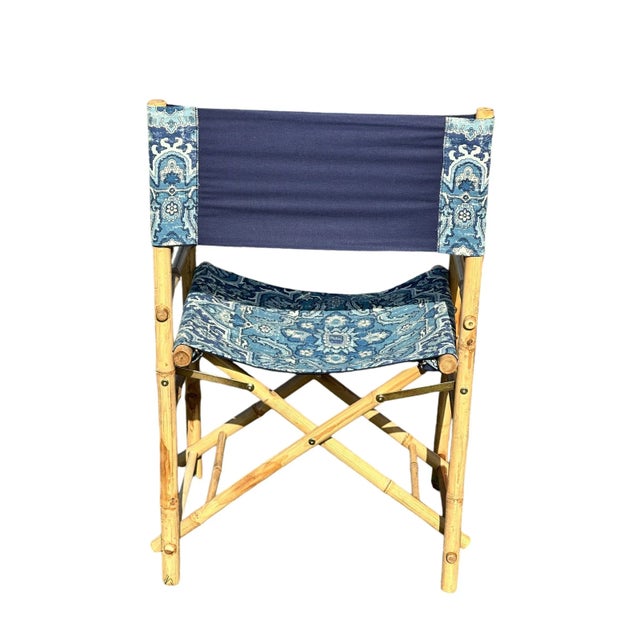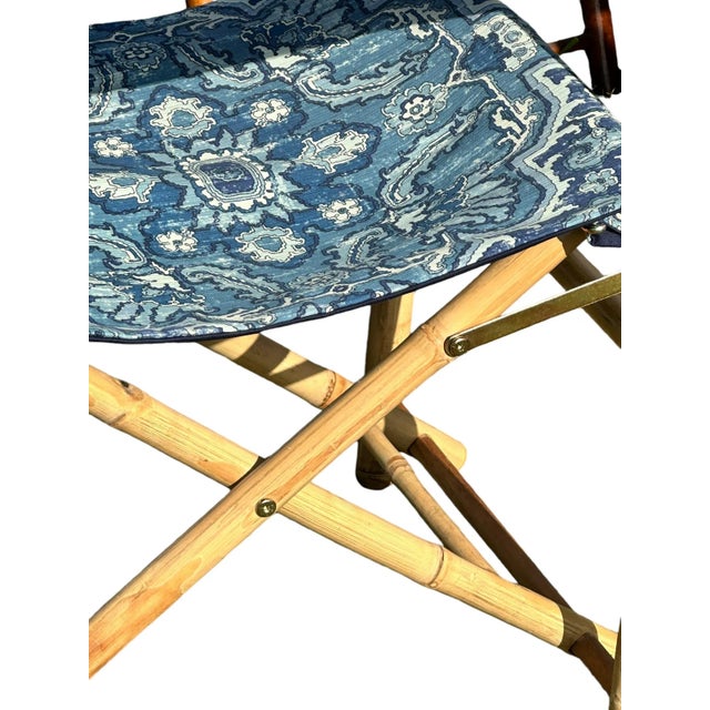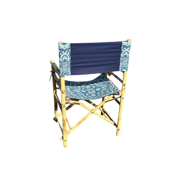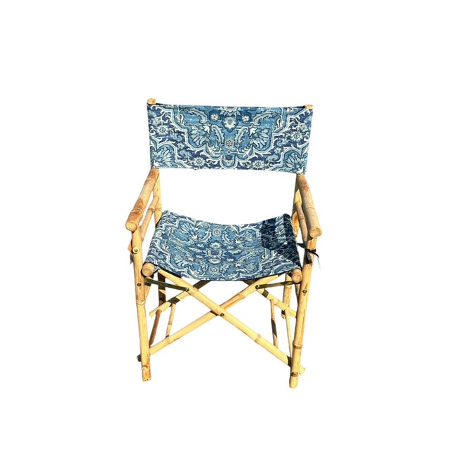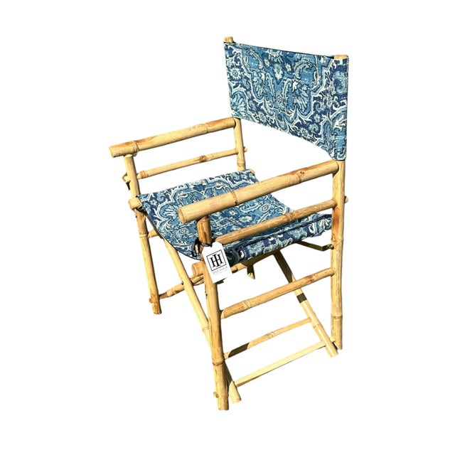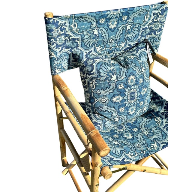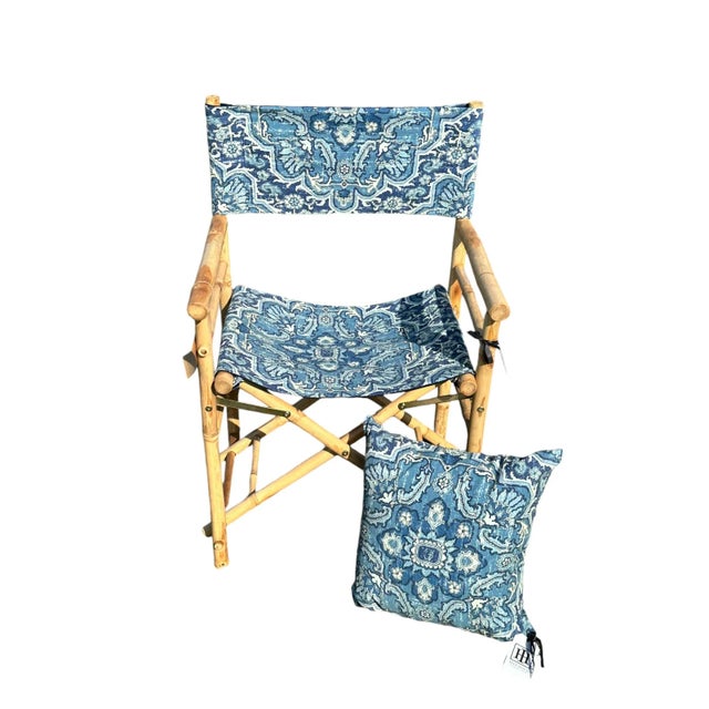 Bespoke Natural Bamboo Directors Chair With Matching Down-Filled Pillow in Heriz Fabric