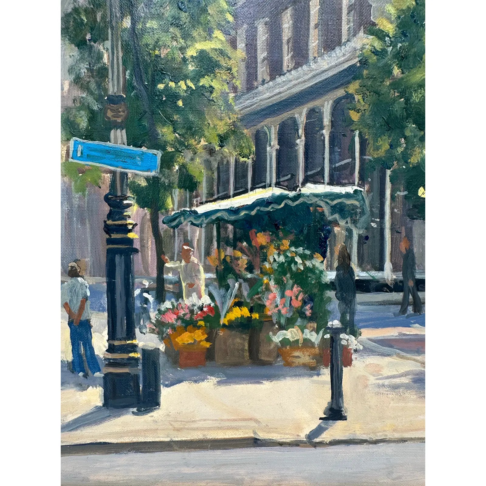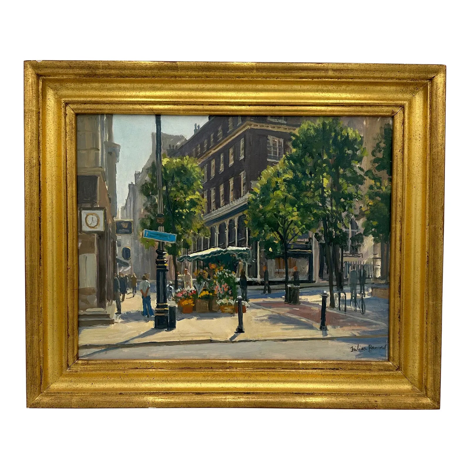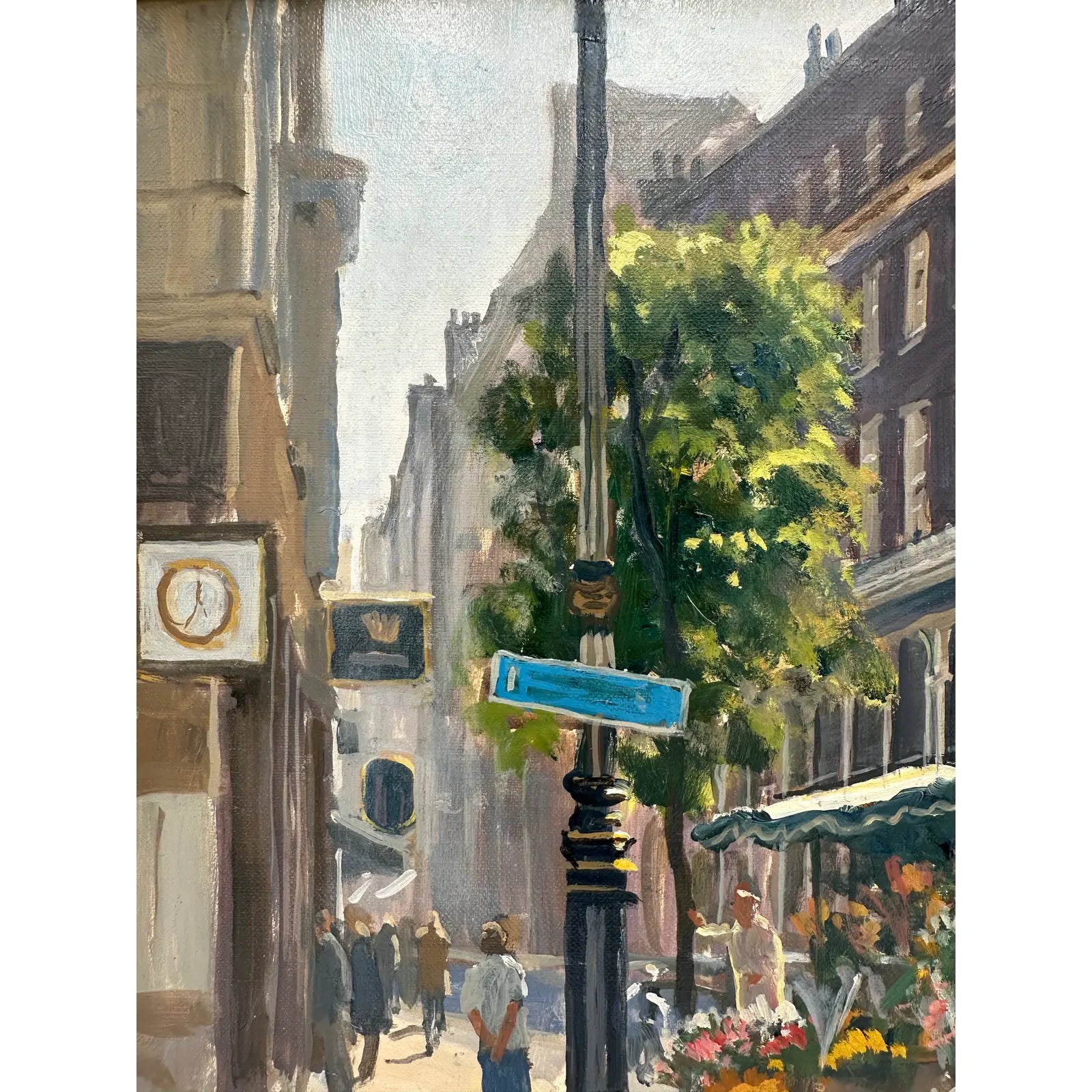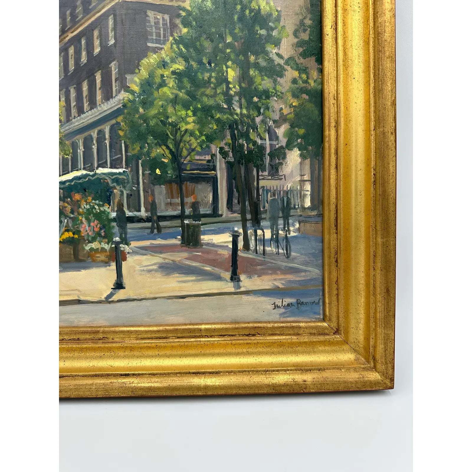 An original oil painting by Julian Barrow titled "Bond Street Flower Seller"