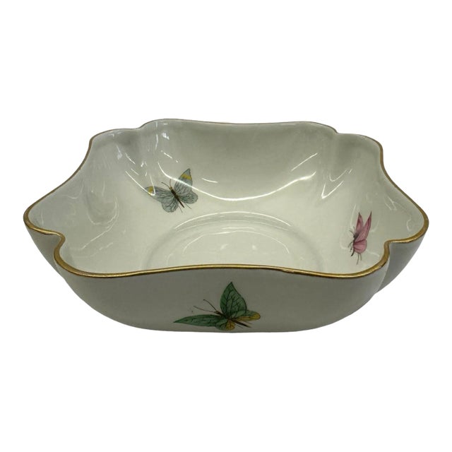 This lovely Limoges bowl features a 22k gold rim and butterfly motifs in yellows, pinks, greens and blues.