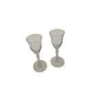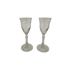 This timeless pair features a refined crystal cut pattern and delicate botanical motifs, complemented by square stepped beaded stems for a balanced silhouette.