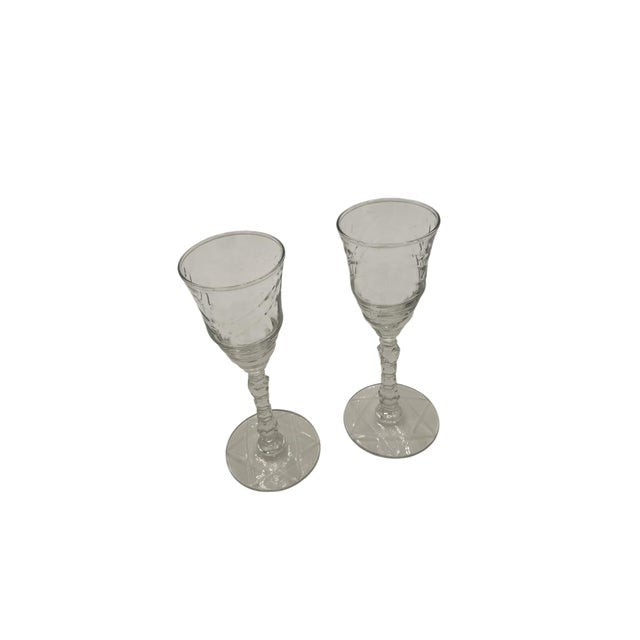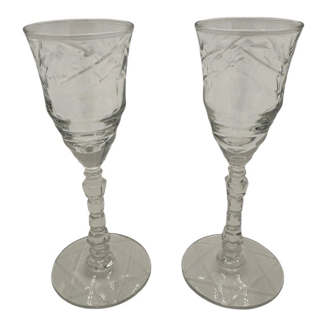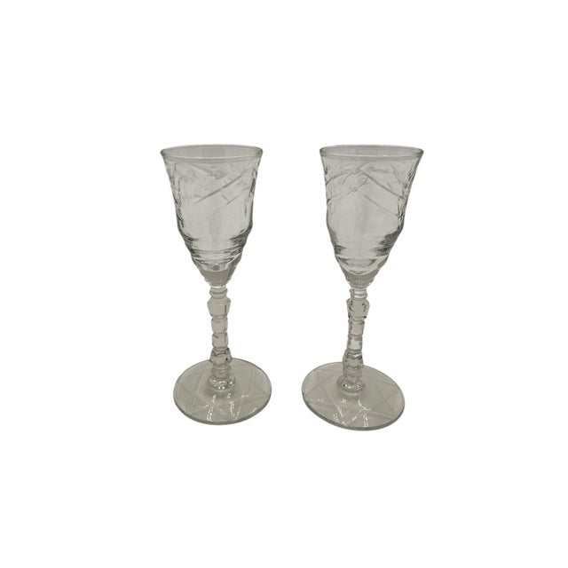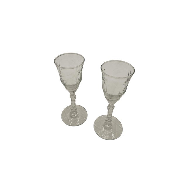Early 20th Century Rock Sharpe Arctic Rose Cordial Glasses - Set of 2