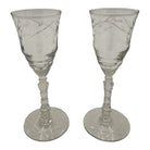 Pair of Rock Sharpe Artic Rose Crystal Cut Cordial Glasses with Botanical Motifs