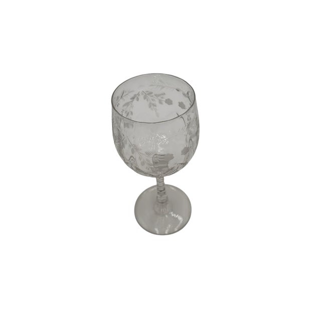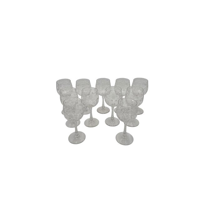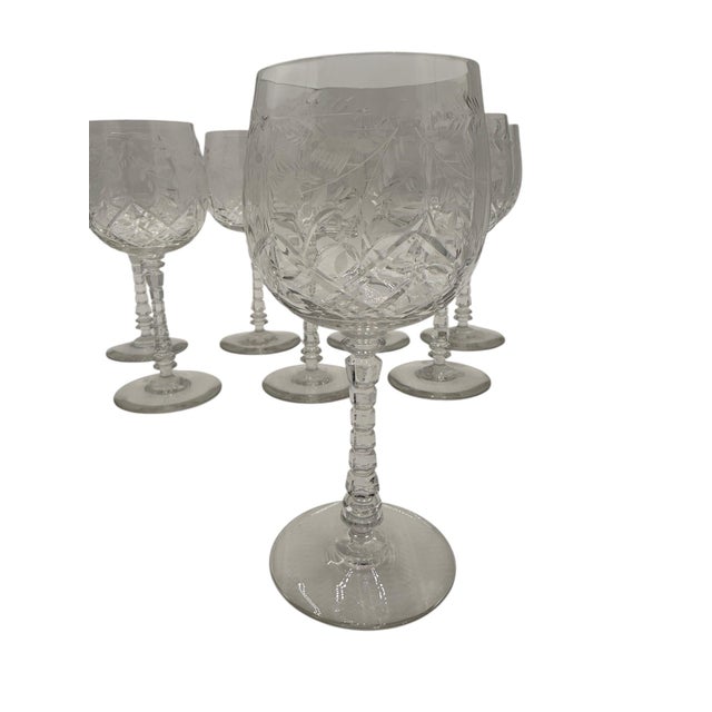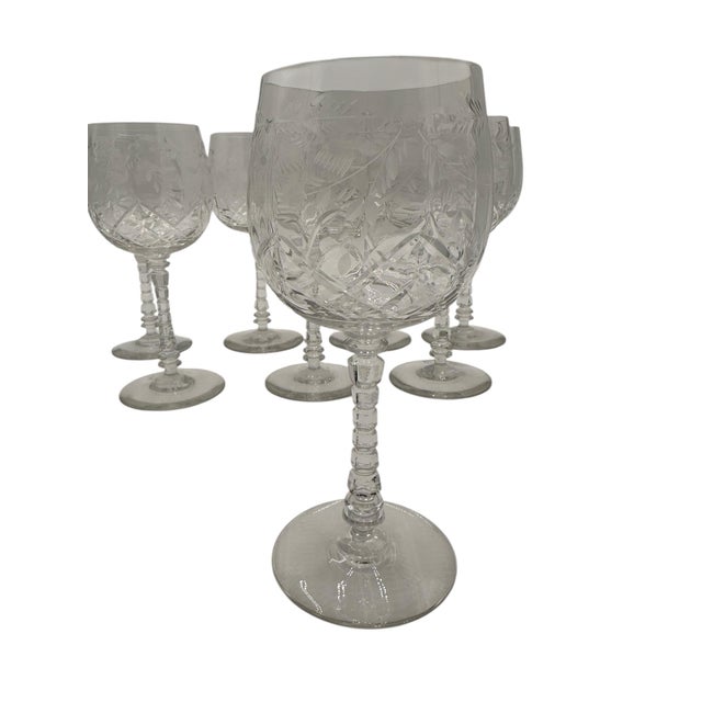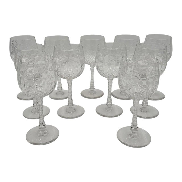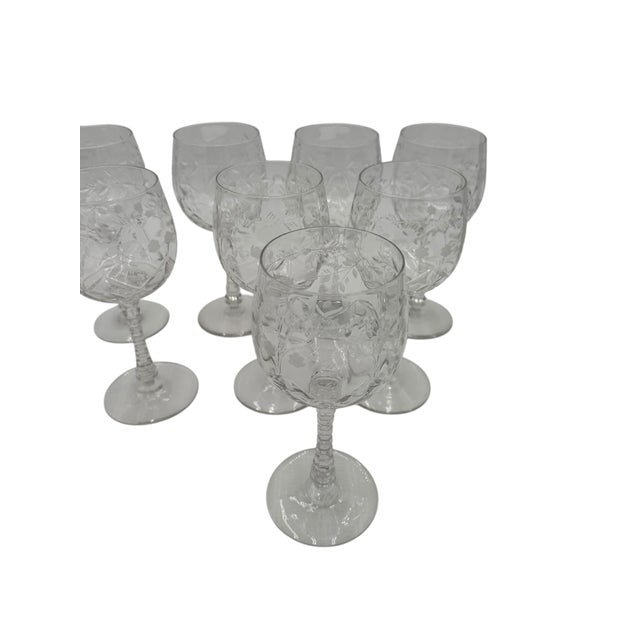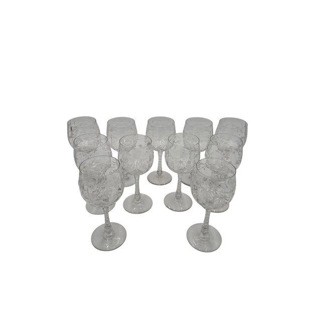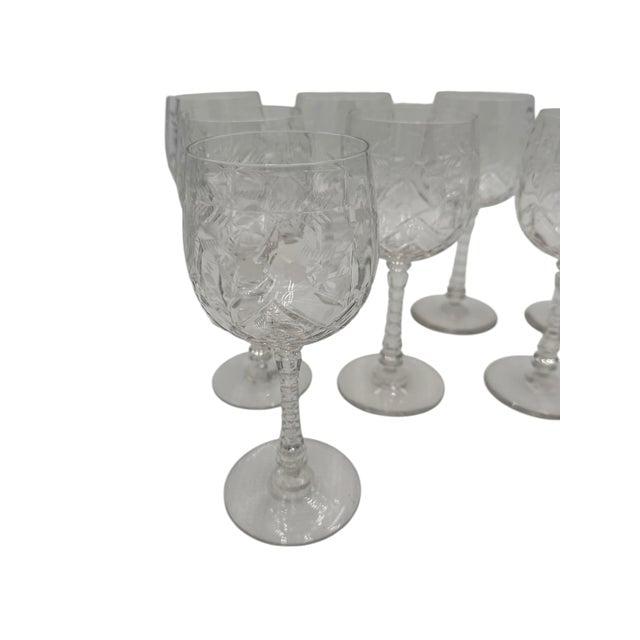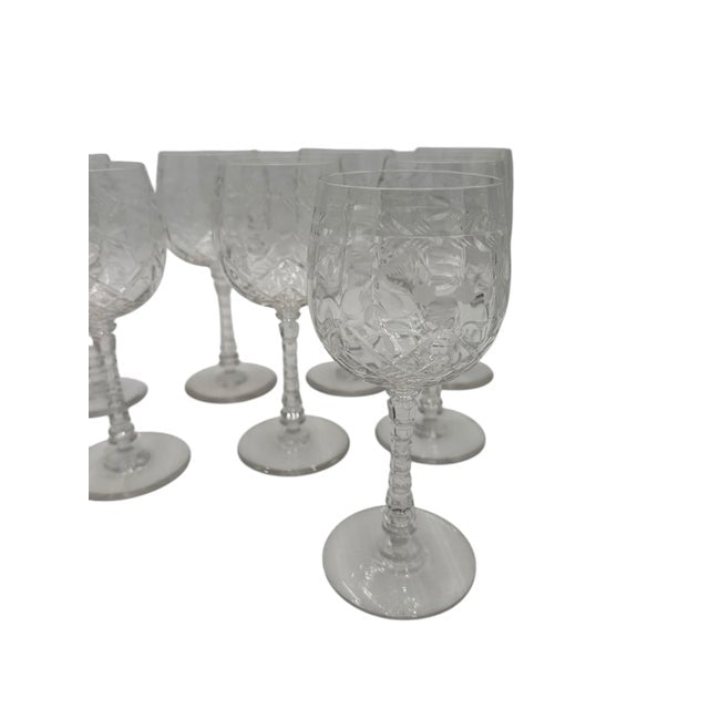Early 20th Century Rock Sharpe Atlantis Crystal Cut Wine Goblets With Floral Motifs - Set of 11