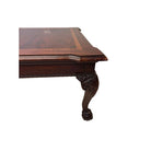 Supported by exquisitely carved cabriole legs ending in traditional ball-and-claw feet, this table is a true homage to 18th-century English design. The deep, rich finish highlights the natural beauty of the wood grain, making it the perfect centerpiece for formal living rooms, studies, or any space that calls for a touch of grandeur.
