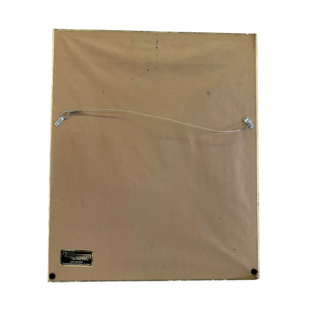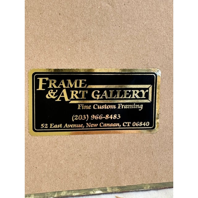This oil is surrounded by a gold frame and cream linen mat.