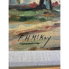 Frances H McKay was an artist born in 1880 in Rockport, Maine. The artist painted primarily coastal scenes (usually with trees and houses along a path leading to the ocean) in the impressionist style. Many of the paintings also had figures in them. Many of McKay's pieces were displayed at the World's Fair in New York in 1939. Little else is known about this talented artist.