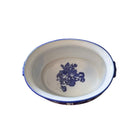 A beautifully rounded and generously sized footbath crafted in Staffordshire, England. This classic English piece showcases a vivid cobalt blue floral transfer pattern set against a creamy white ground, with elegant molded detailing along the body and twin curled handles at either end. The deep basin and wide rim evoke the original utility of the footbath, while its decorative potential is endless.