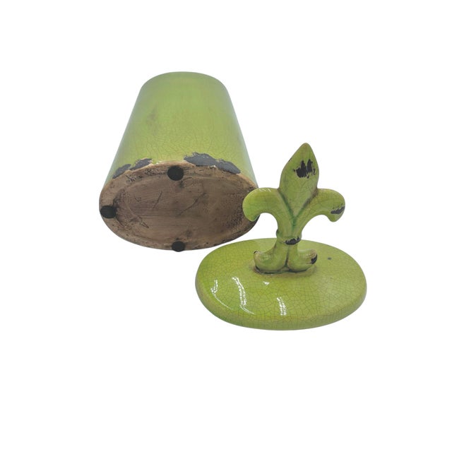Large Crackle Glaze Chartreuse Fleur-De-Lis Lidded Jar