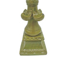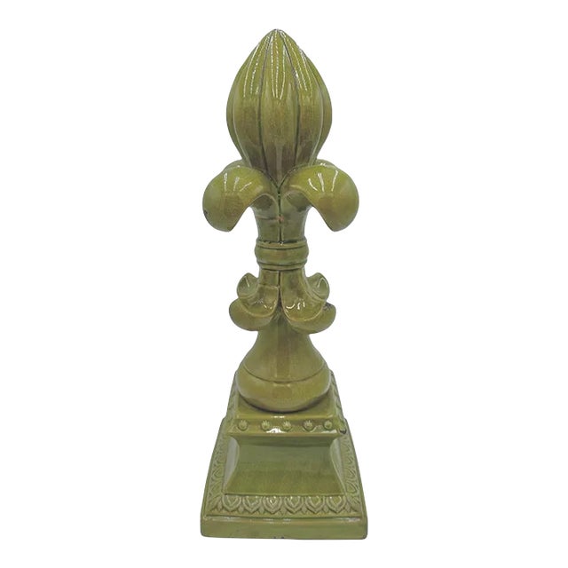This striking large fleur-de-lis sculpture features a rich chartreuse crackle glaze. The classic fleur-de-lis motif, symbolizing French royalty and nobility, is beautifully highlighted by the textured crackle finish, giving it a timeless yet contemporary appeal.
