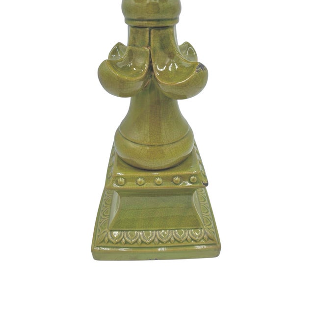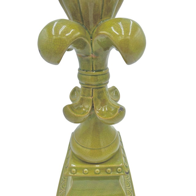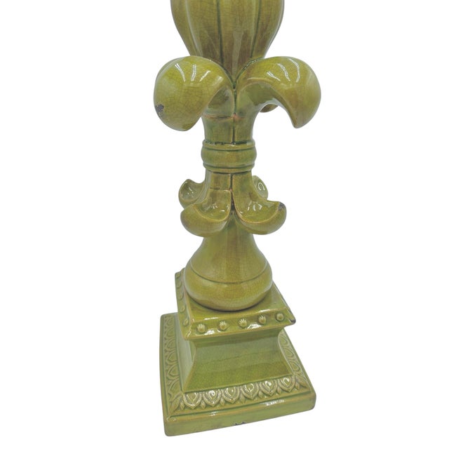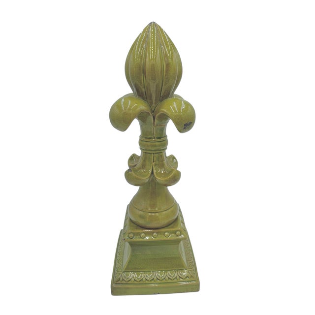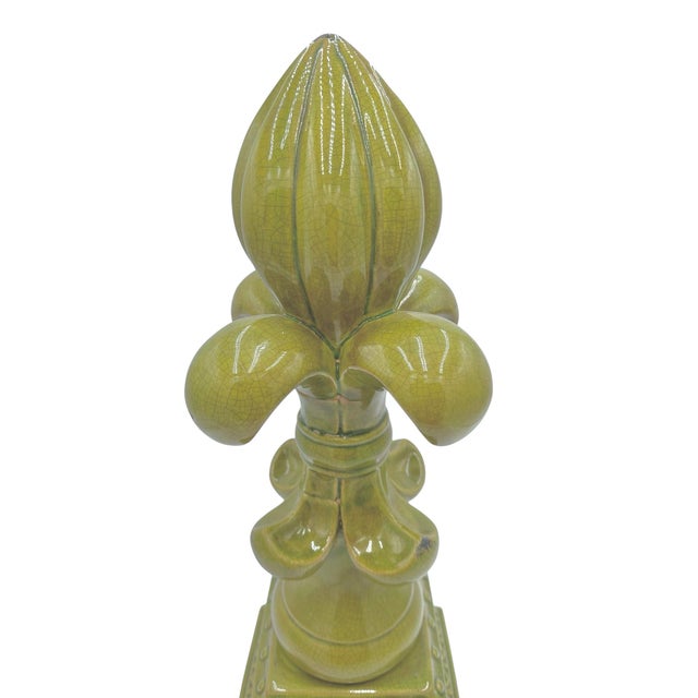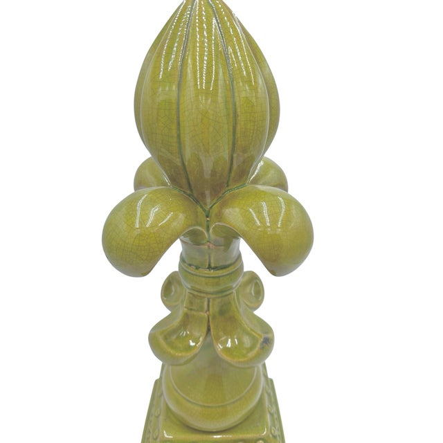 Large Fleur-De-Lis Crackle Glaze Chartreuse Sculpture
