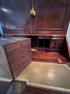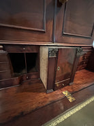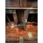 Three long drawers and three short drawers supported by ogee bracket feet make up the bottom half of the secretary.