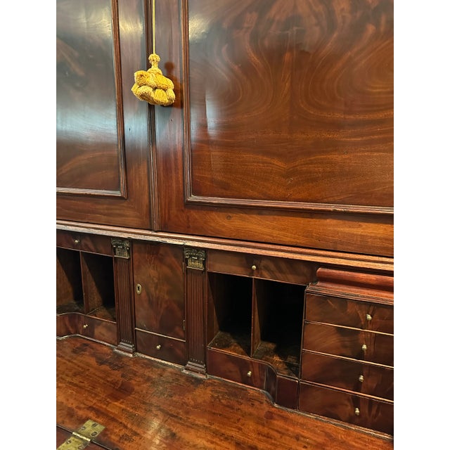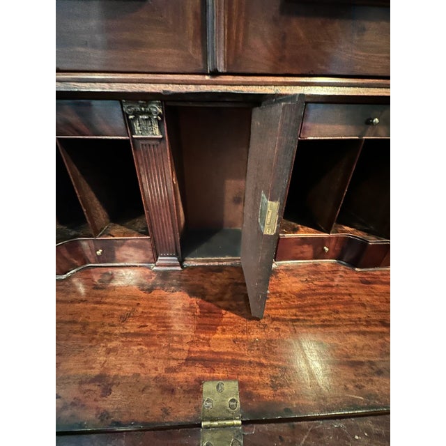 Sourced from a beautiful New Canaan estate, the secretary comes with an original letter from the owner, stating the piece was brought to the US from Guernsey over 20 years ago. It captures the essence of a bygone era, exuding the elegance and refinement of the Georgian period, while providing a sophisticated workspace to meet modern needs.