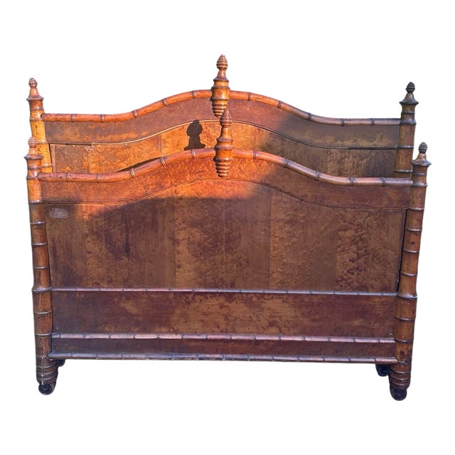 Late 19th Century French Faux Bamboo Birdseye Maple Headboard and Footboard