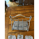 Late 19th Century Victorian English Bamboo Form Sheffield Silver Plate and Crystal Cruet Set- 7 Pieces