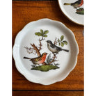 Add a touch of timeless elegance to your table with this exquisite set of three Herend Rothschild Bird pattern coasters. Handcrafted in Hungary from fine porcelain, these coasters showcase the charming Rothschild Bird design—a classic motif featuring delicate songbirds and intricate florals, surrounded by a scalloped, hand-painted gold rim.