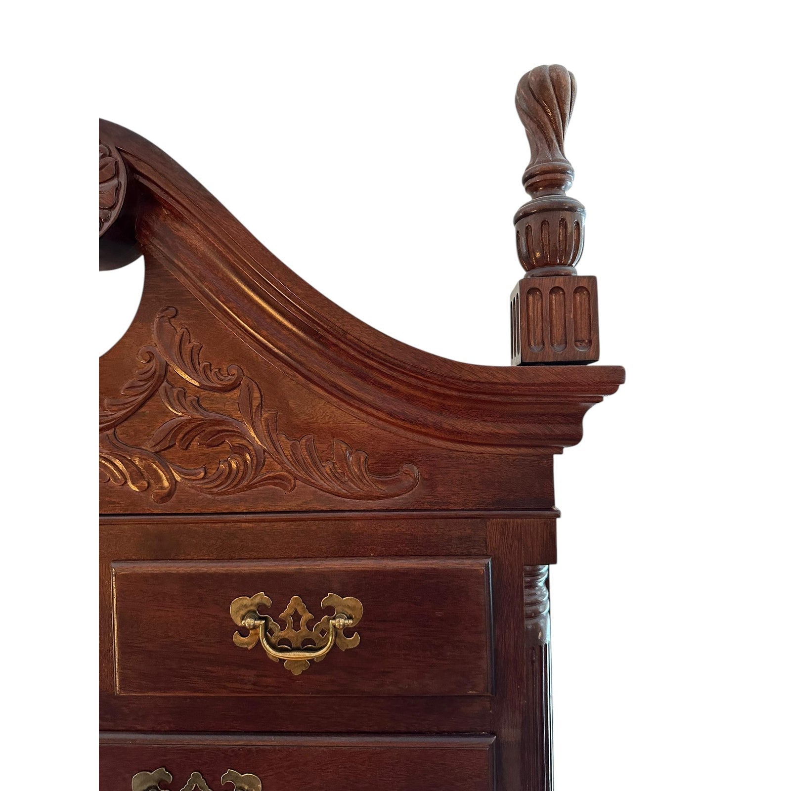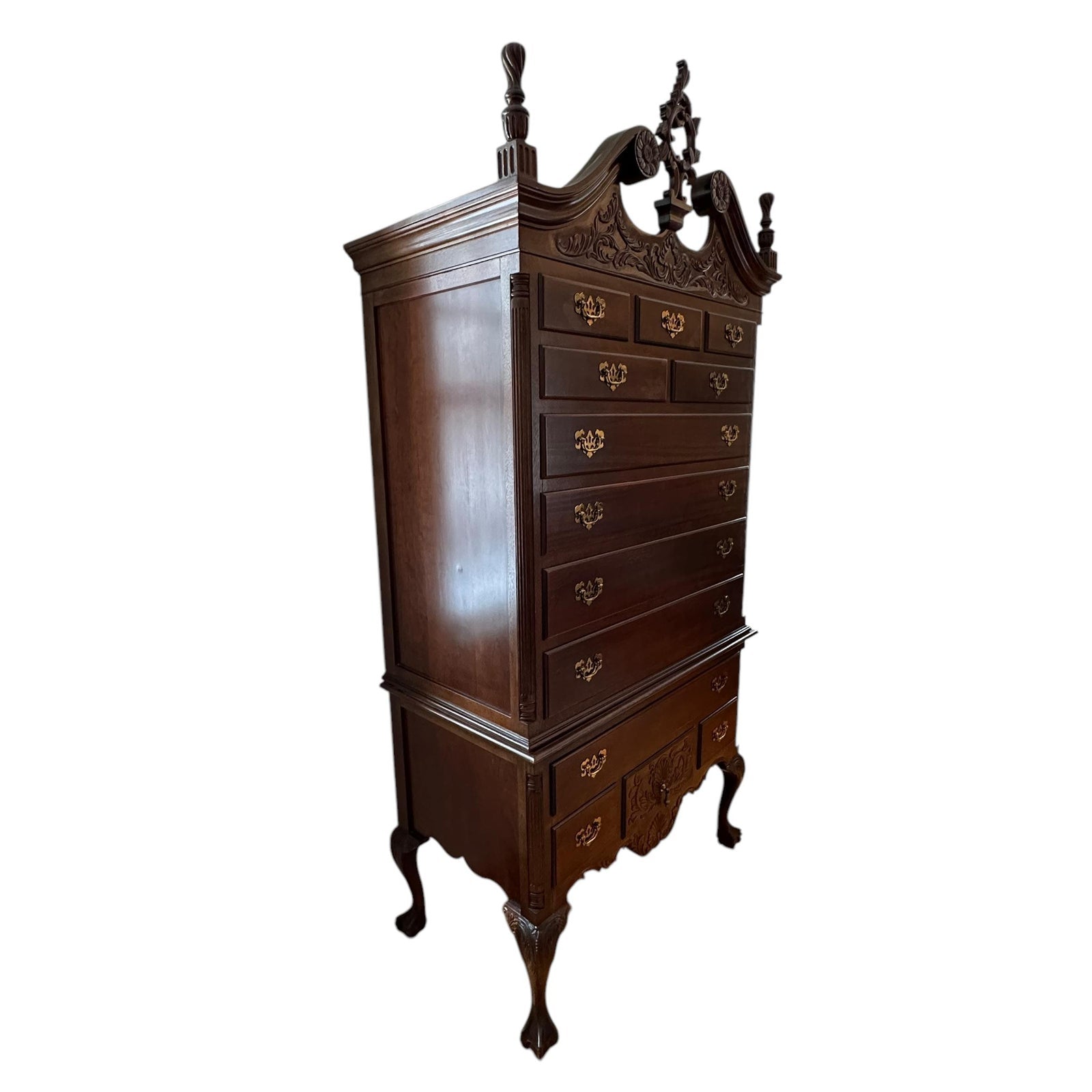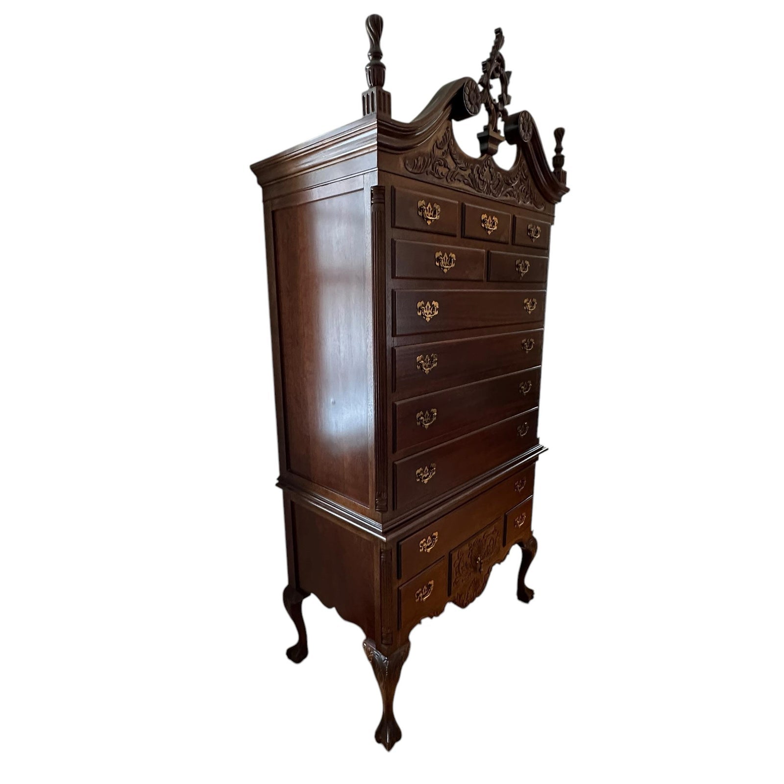 Late 20th Century National Mount Airy Chippendale Solid Cherry Highboy With Brass Hardware