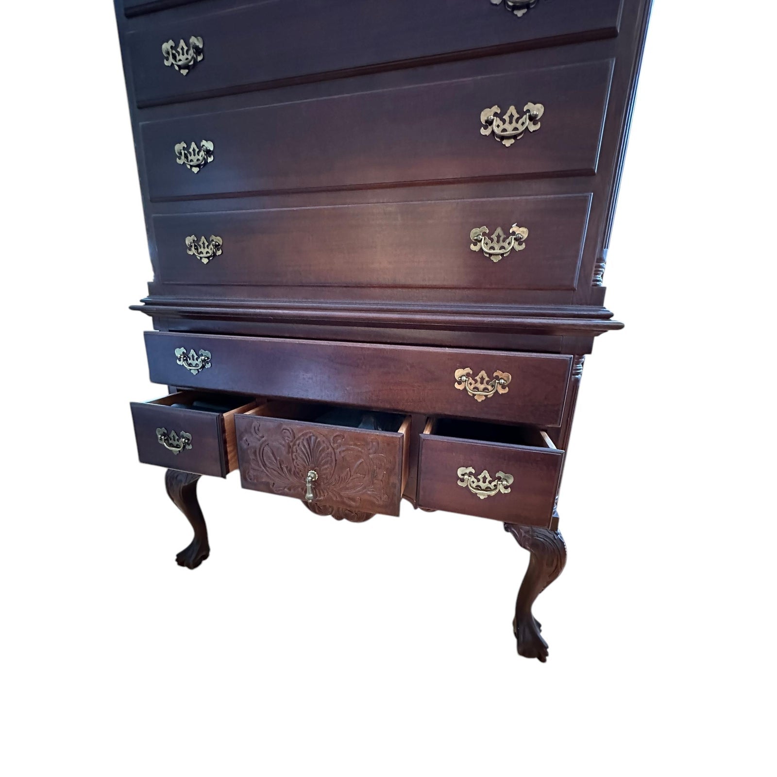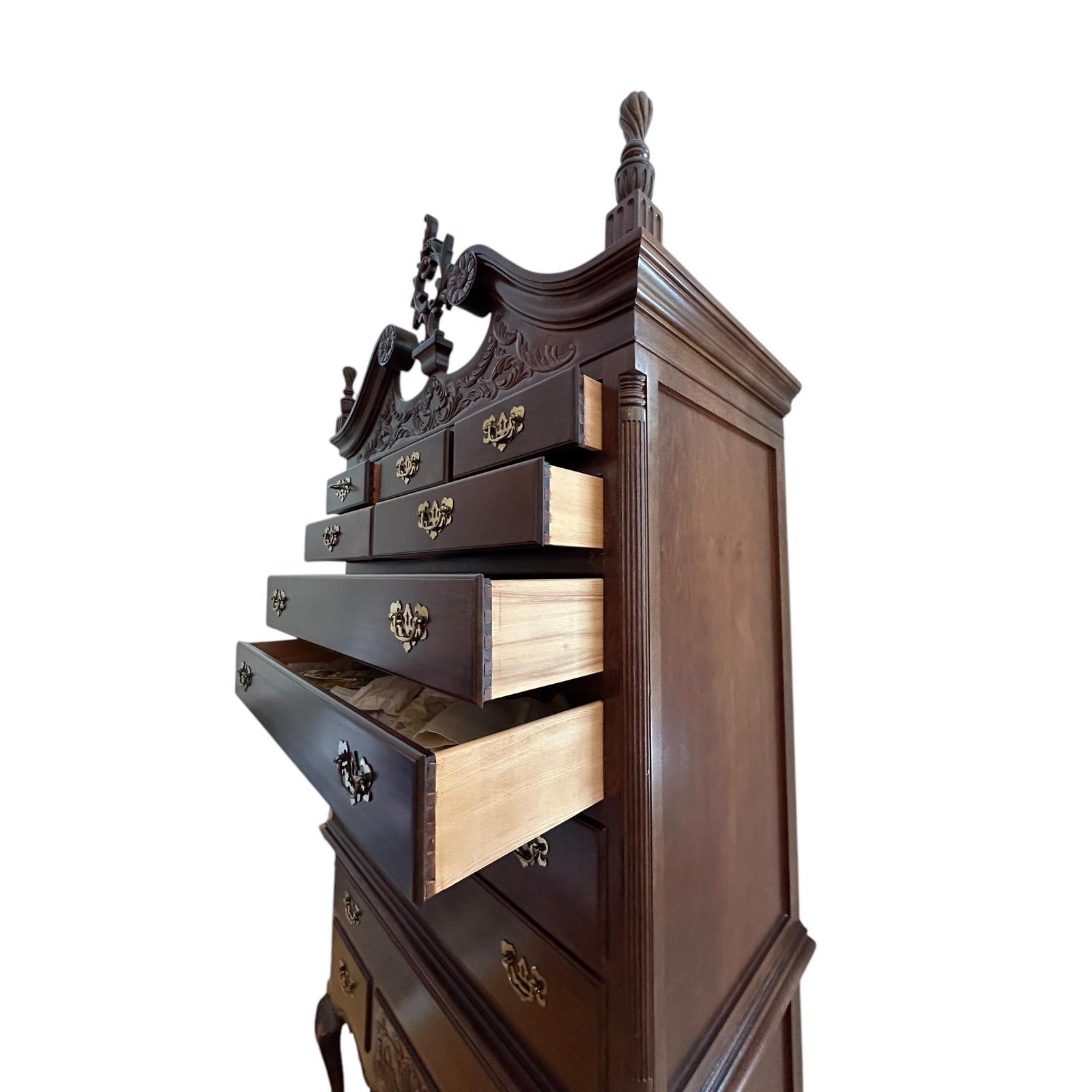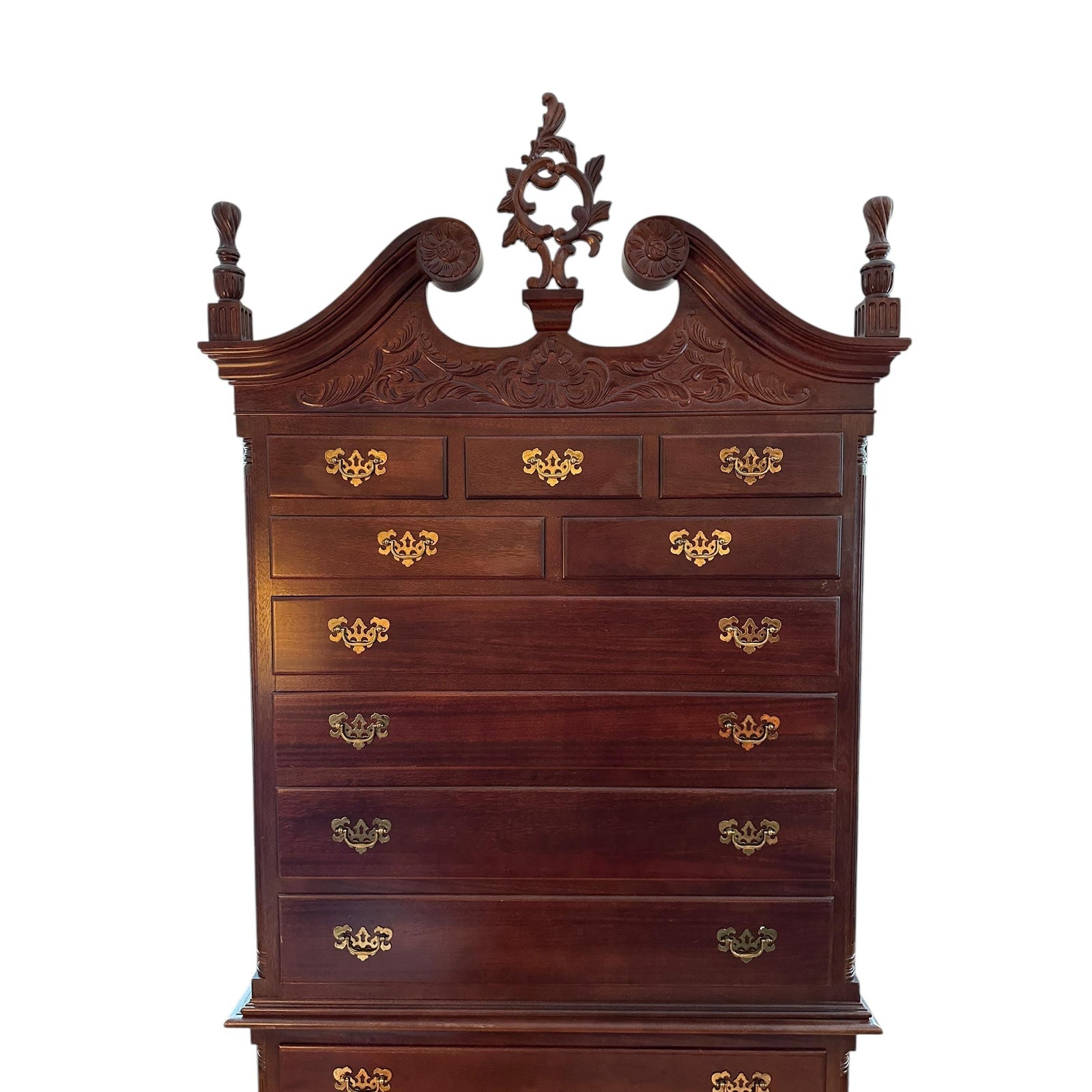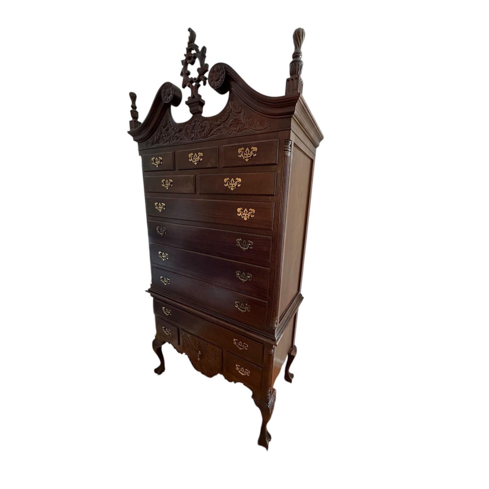 Late 20th Century National Mount Airy Chippendale Solid Cherry Highboy With Brass Hardware