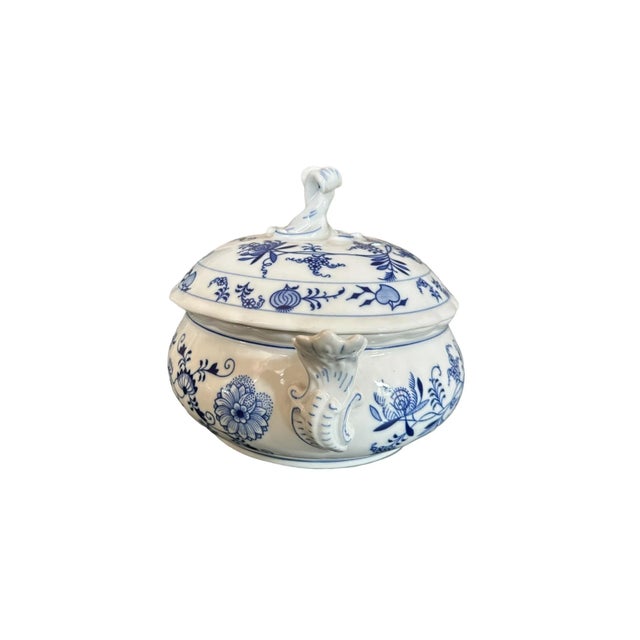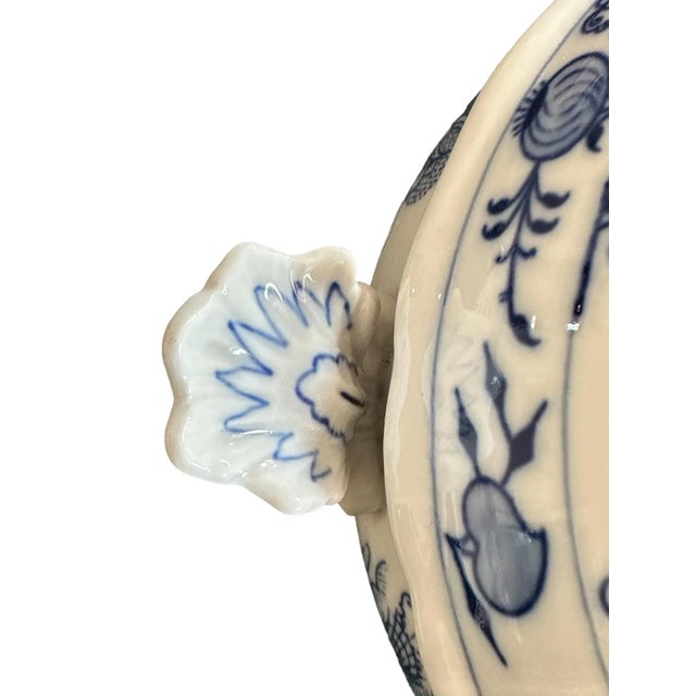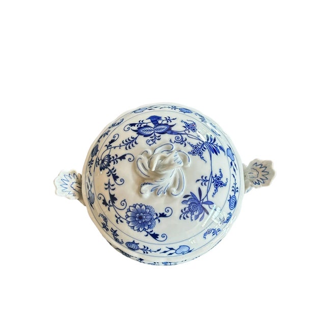 Late 20th Century Original Bohemian Zwiebelmuster Blue Onion Soup Tureen With Twisted Top Lid