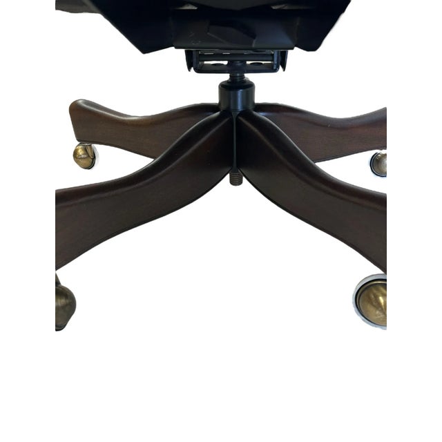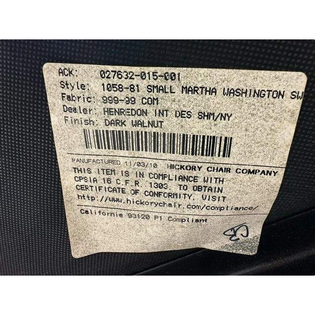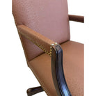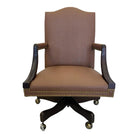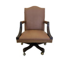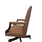 One Hickory's most classic chairs, the Martha Washington swivel desk chair features fluted Chippendale legs and hallmark receding arm posts. This piece features a brown ostrich embossed leather with brass nail heads and castors. The wood on the chair is finished in a luxurious dark walnut.