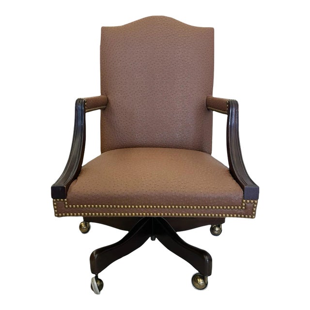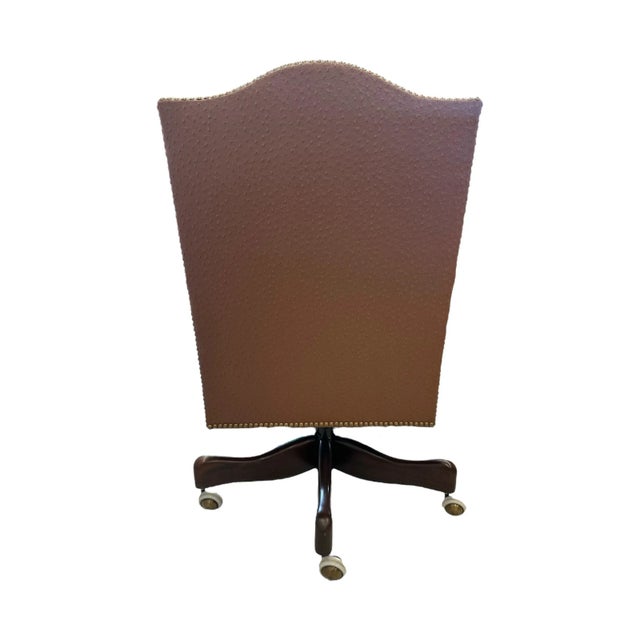 Impressive Ostrich Embossed Leather Desk Chair from Hickory Chair Company in their classic Martha Washington Style.